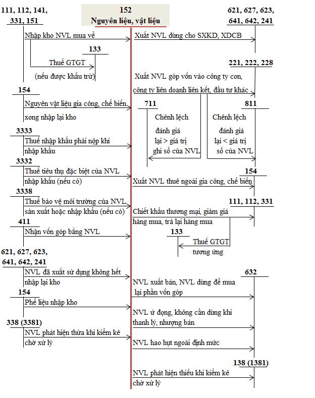 Sơ đồ hạch toán chữ T tài khoản 152.